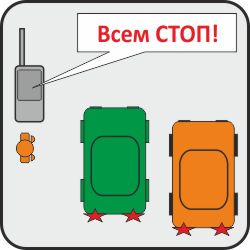 При срочных вопросах, не работающей рации или поломки авто, остановитесь в безопасном месте и включите “аварийку”. Инструктор подойдет сам.